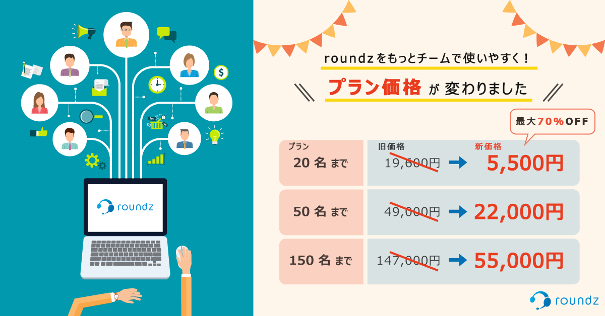 この度、新型コロナウイルスの感染拡大が長期化する現状を鑑み、より多くのお客様に roundz の価値をご提供するため価格プランを刷新する運びとなりました。