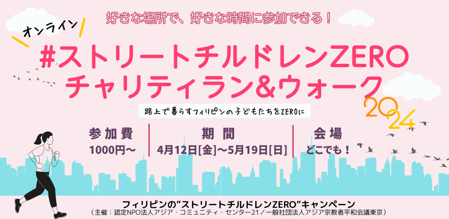 フィリピンで路上生活を余儀なくされている子どもたち”ストリートチルドレン”を支援することを目的に、誰でも好きな時間に、好きな場所で走って・歩いて参加できる、オンラインのチャリティラン&ウォーク。