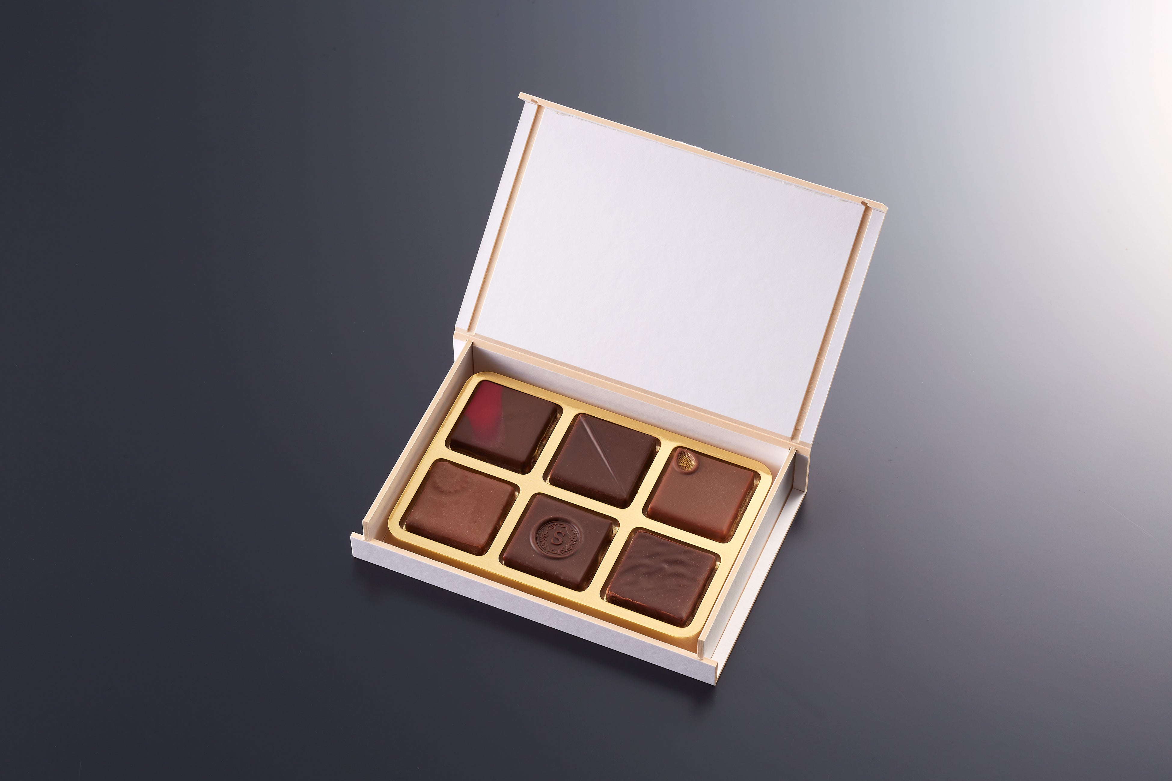 ベルガモット、オリジナルブレンド《ビター》、Sake(日本酒)など当館のパティシエが拘り抜いた贅沢なフレーバーを、6つのチョコレートのセンターに使用したプレミアム感溢れるチョコレートで至福のひと時を