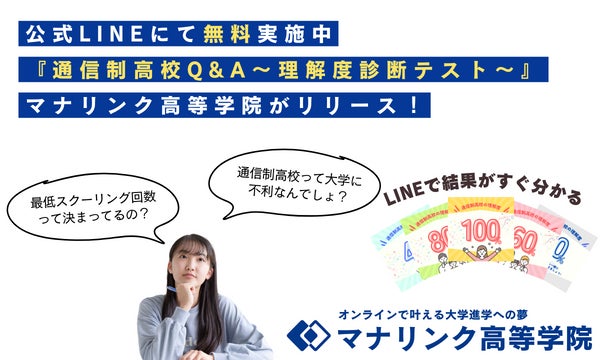 オンラインで大学進学を目指す通信制高校・サポート校のマナリンク高等学院が通信制高校の疑問や悩みを解決する『通信制高校Q&A~理解度診断テスト~』をリリース