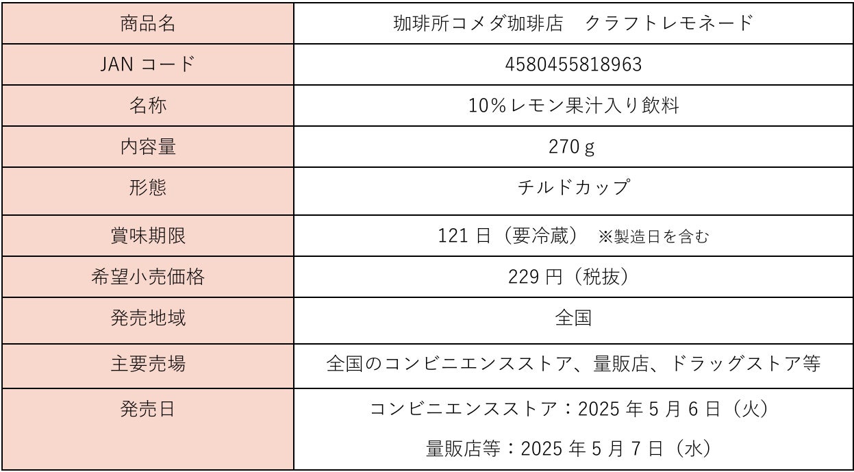 コメダ珈琲店が監修するチルドカップ飲料シリーズは、2015年の発売以来、近くのコンビニでコメダ珈琲店の魅力が味わえる商品として、幅広いお客様からご好評を頂いており、累計出荷本数1億本(2015年7月~2024年1月末時点)を突破しました。そんなコメダ珈琲店監修の「クラフトレモネード」が新登場。コメダ珈琲店のおいしさをいつでもどこでも、チルドカップでお手軽にお楽しみください。