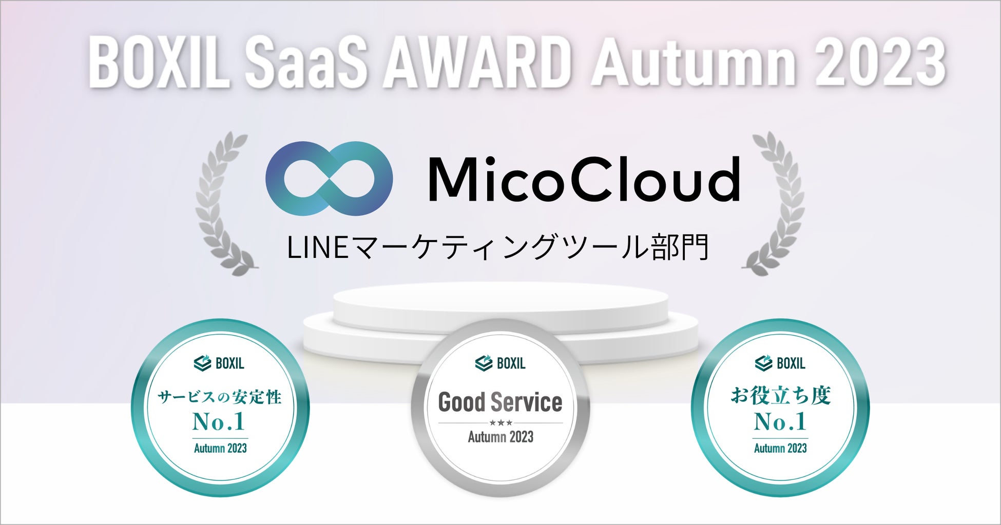 MicoCloudが「BOXIL SaaS AWARD Autumn 2023」LINEマーケティングツール部門 「Good Service」「サービスの安定性No.1」「お役立ち度No.1」に選出