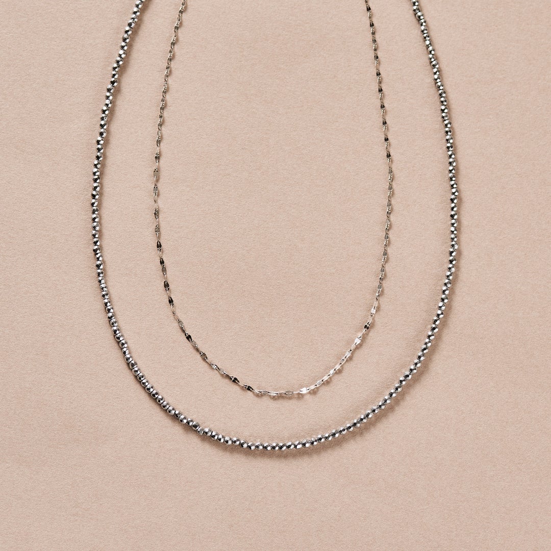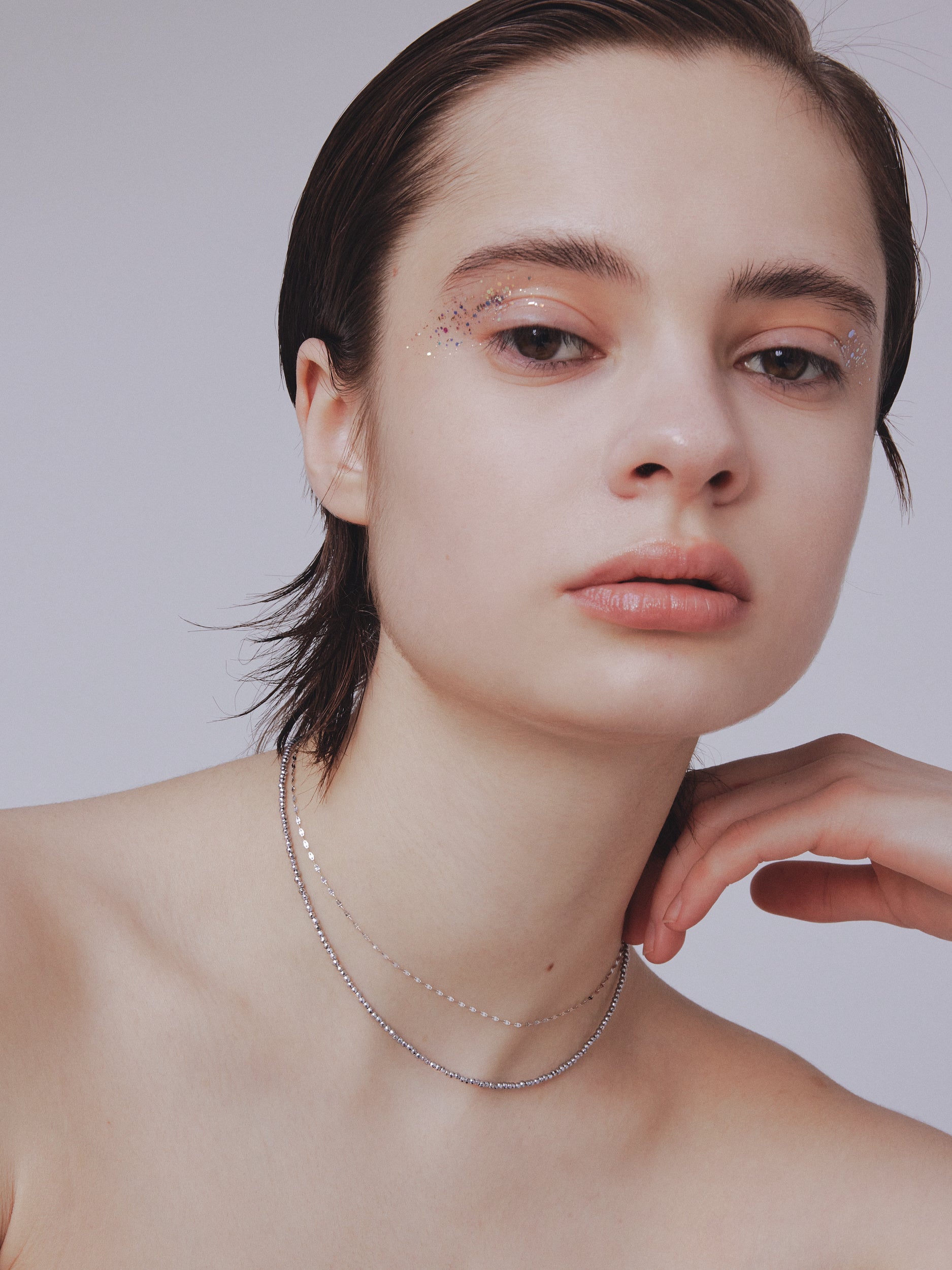 洗練度の高いシルバーにはホワイトゴールドの美しい質感をレイヤードすることで生まれる凛とした煌めきが首元に宿ります