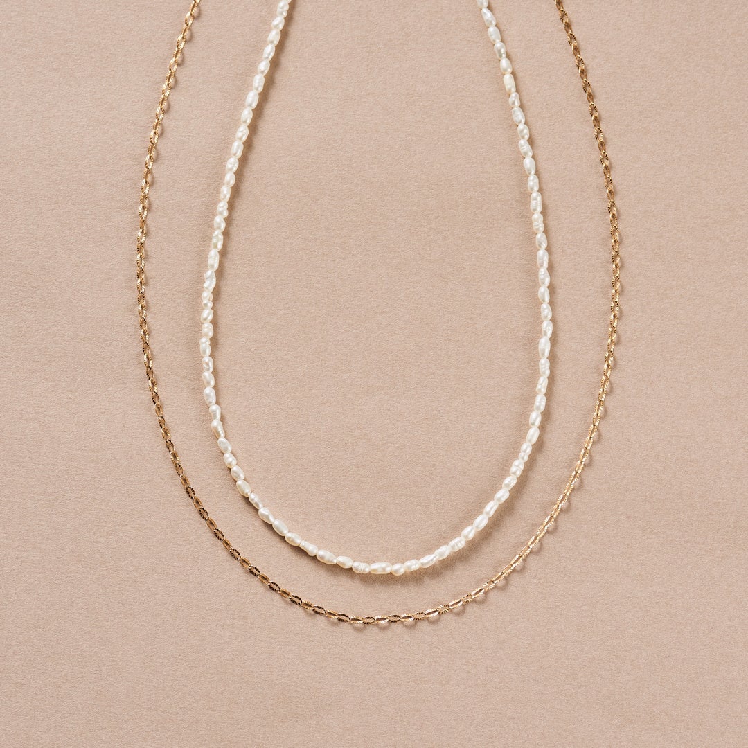 その輝きに神秘のエネルギーを添えるようなパールを重ねたレイヤードセット