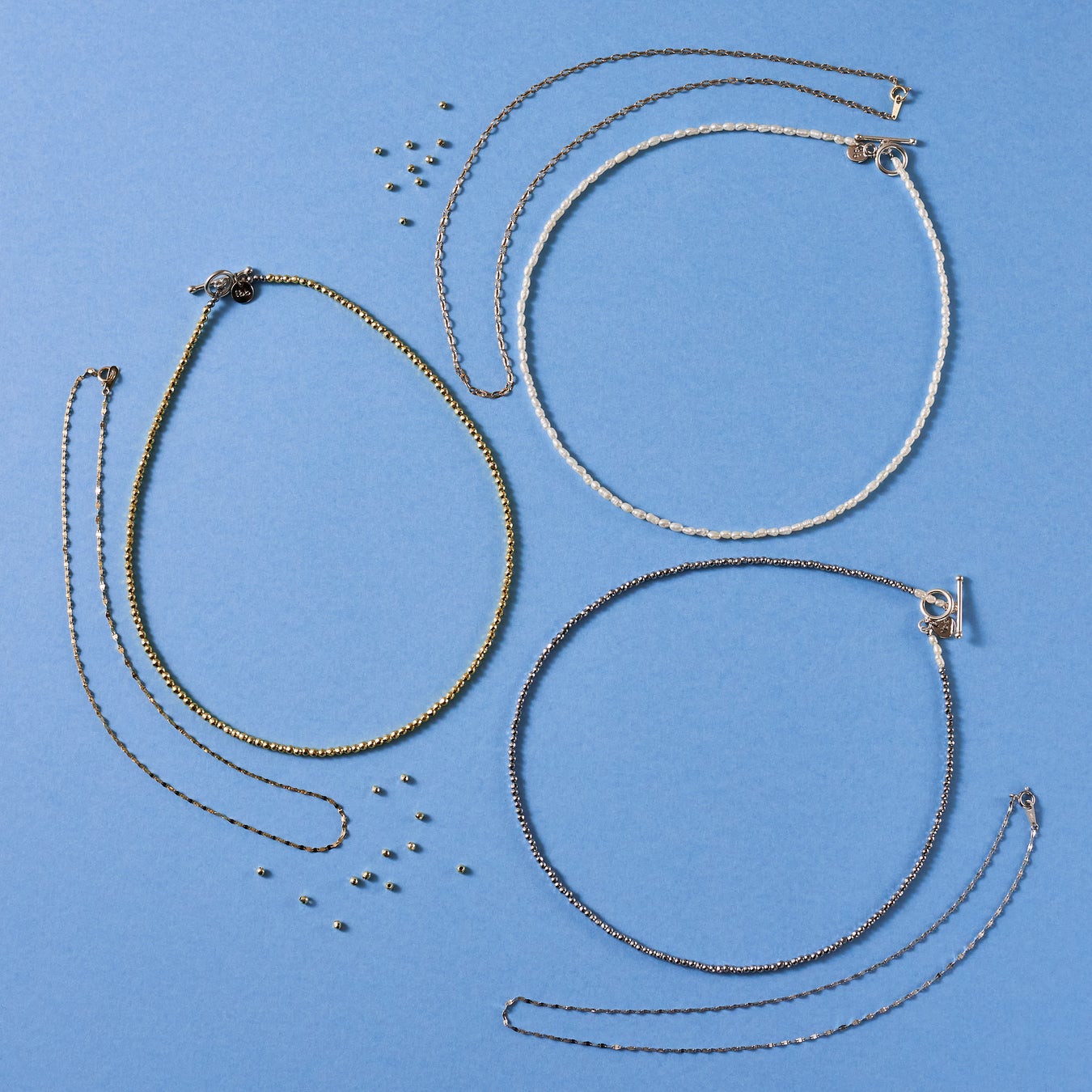 異なる質感と光沢が織りなす、洗練を纏うような輝きを首元に。