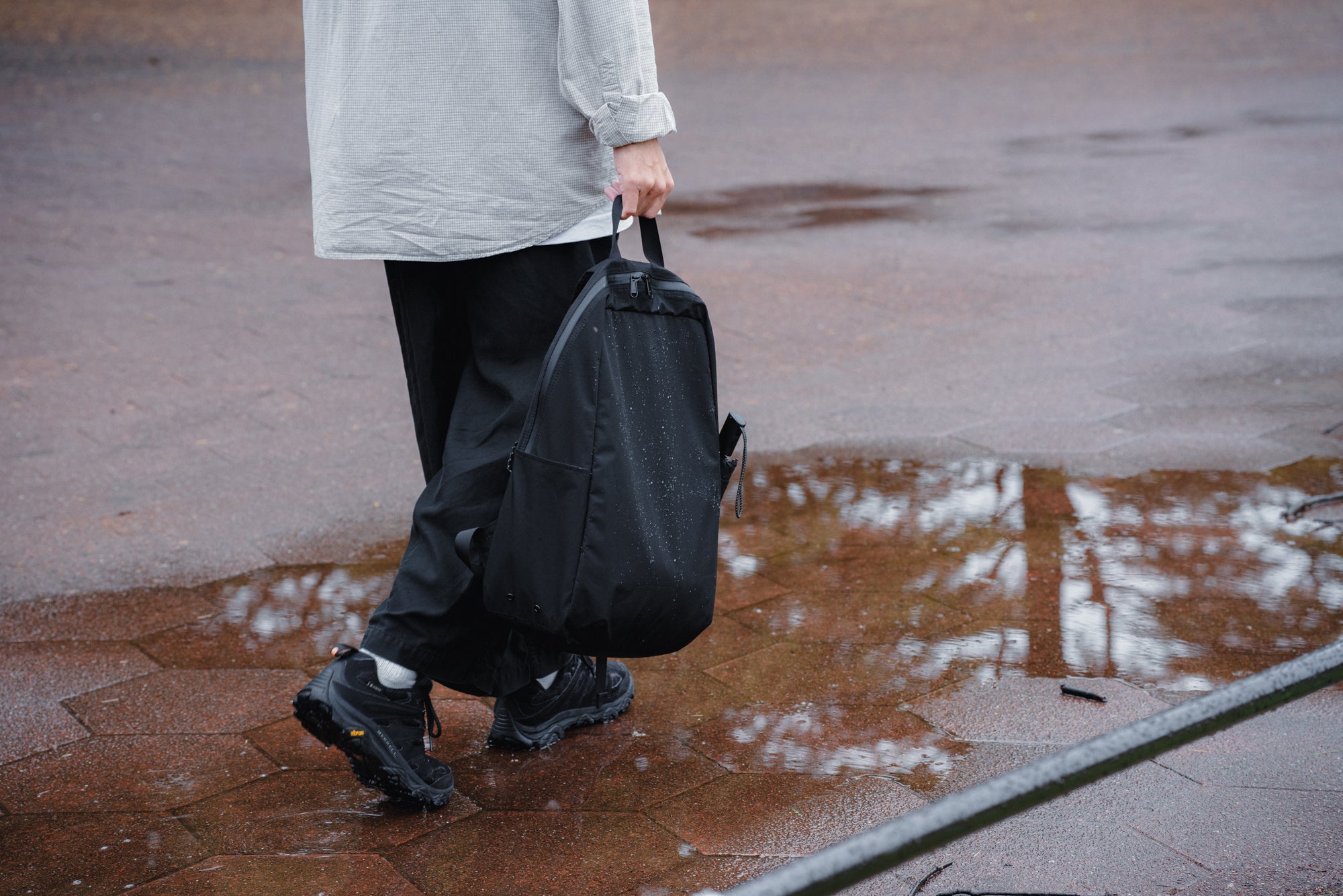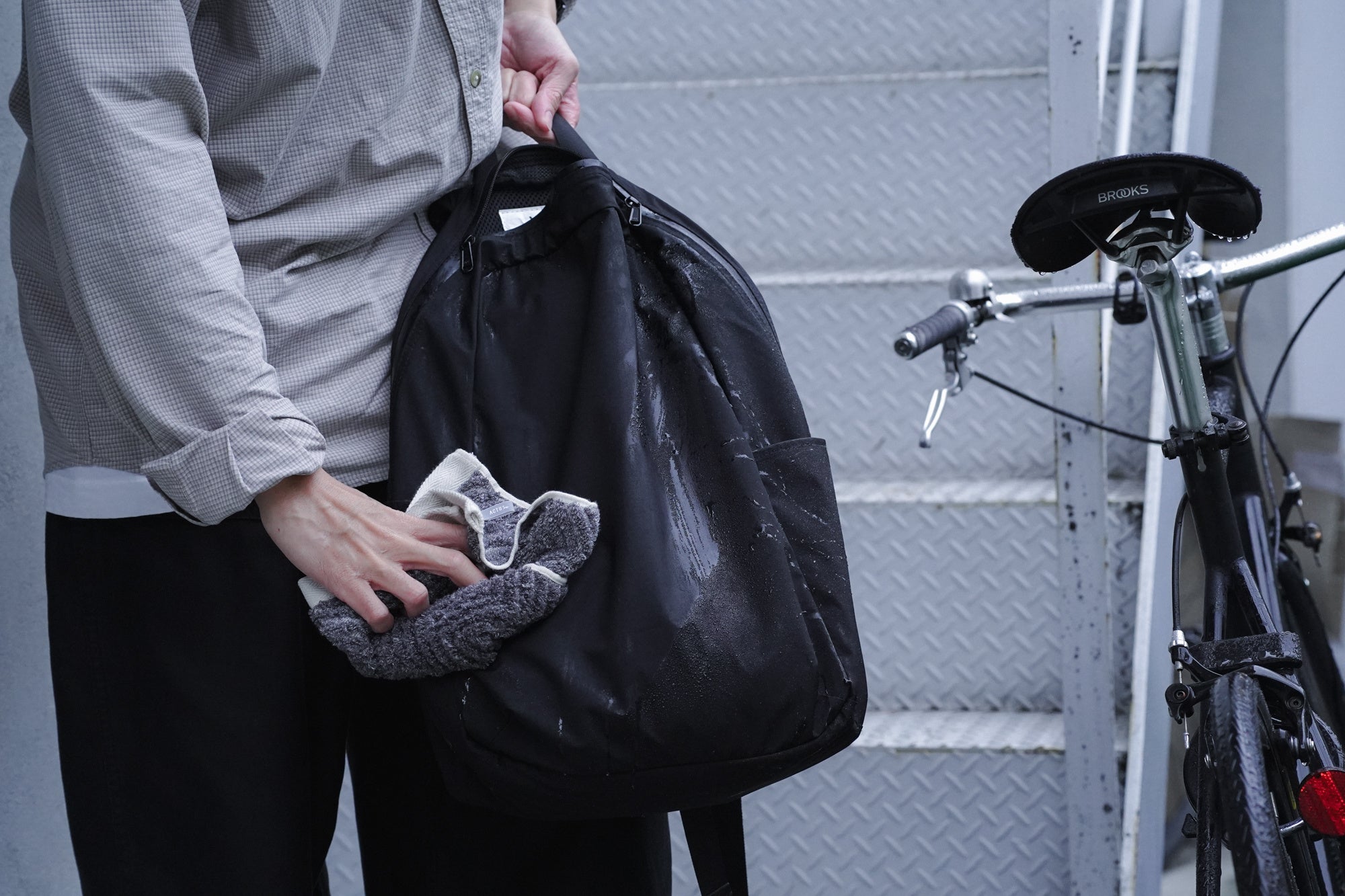 耐水圧と透湿性に優れた3レイヤー構造の防水ファブリックを採用。突然の雨や悪天候でも中身をしっかり守ります。水滴や汚れも、表面を軽く拭くだけでOK。毎日の手入れがぐっとラクになります。