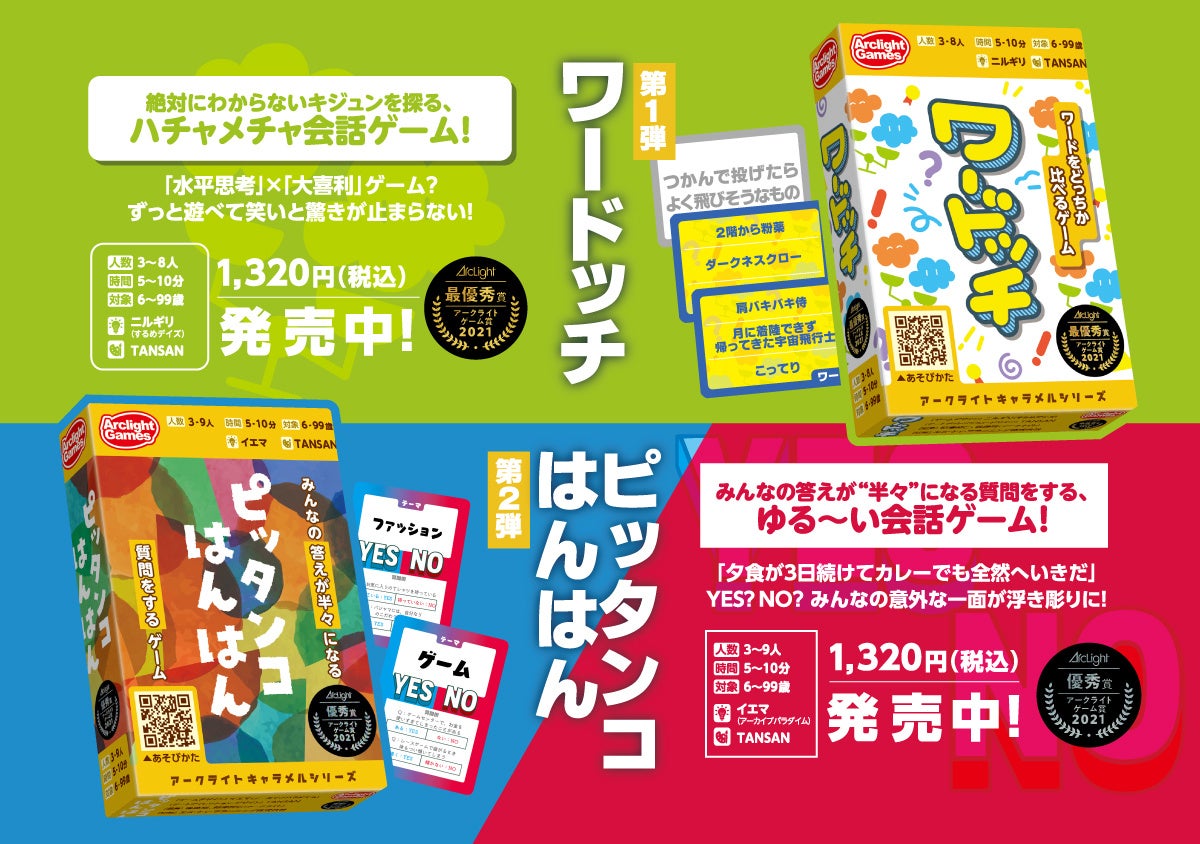 - キャラメルシリーズ第1弾『ワードッチ』第2弾『ピッタンコはんはん』も好評発売中!