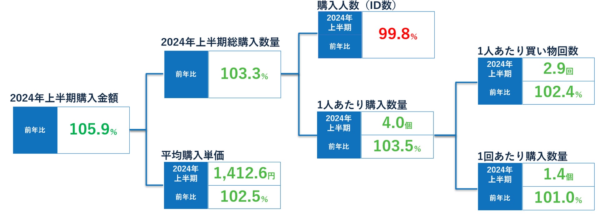 ●2024年上半期における一人あたりの購入数量が前年比97.2%に減少