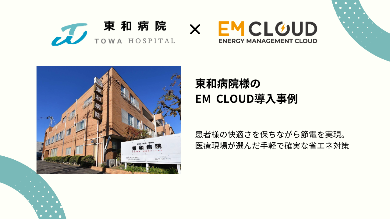 エネルギーマネジメントシステム"EM CLOUD"を提供する株式会社ムダカラ(本社:東京都港区、代表取締役:田﨑太郎、以下、当社)は、医療法人社団弘象会 東和病院(埼玉県さいたま市、以下、東和病院)に提供したEM CLOUDの導入事例インタビューを公開しました。東和病院様は2025年にEM CLOUDを導入したことで、職員や患者様に負担をかけることなく、省エネ対策を実現しています。総務課の中山様に、選定理由から今後の展望まで、お話をうかがいました。