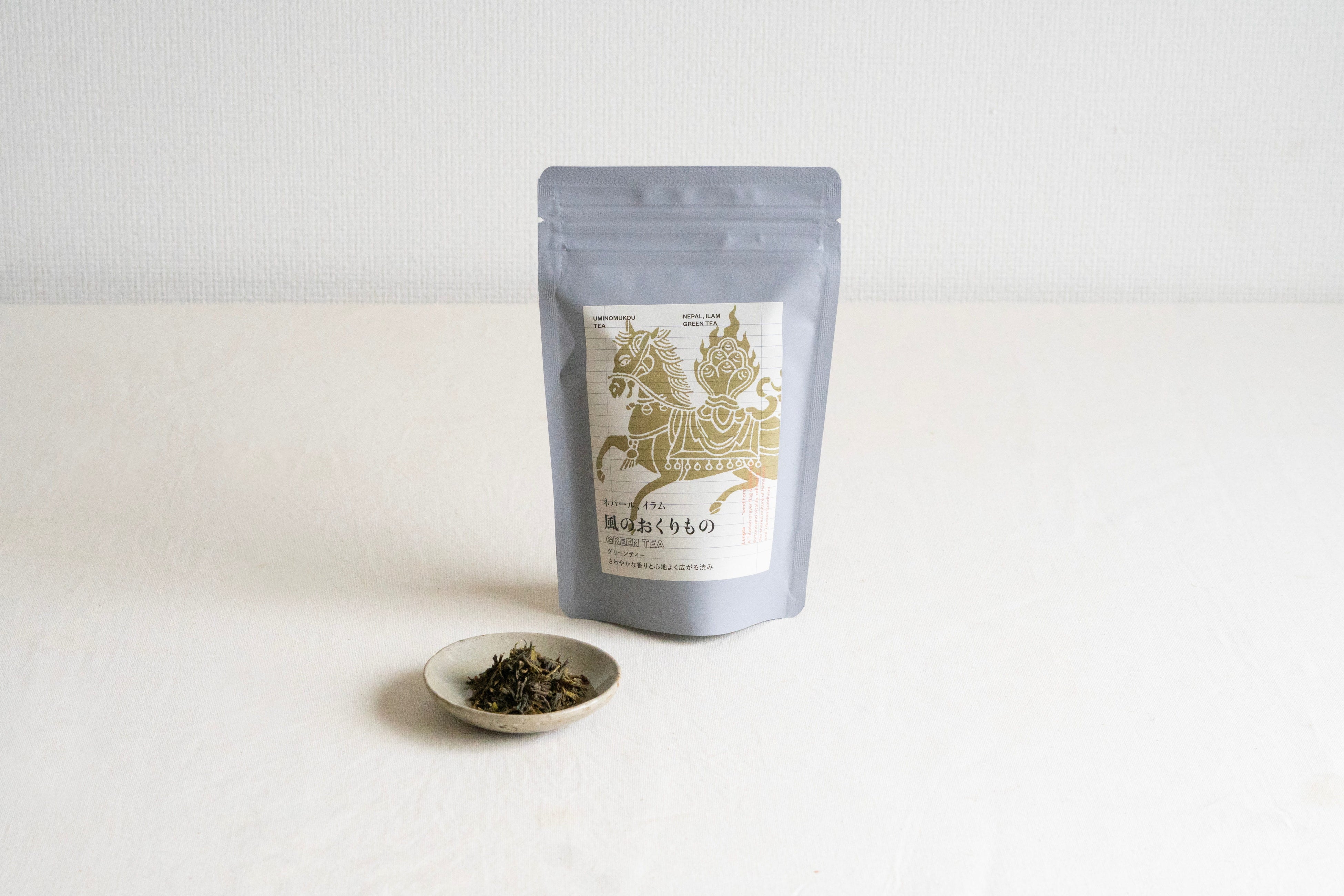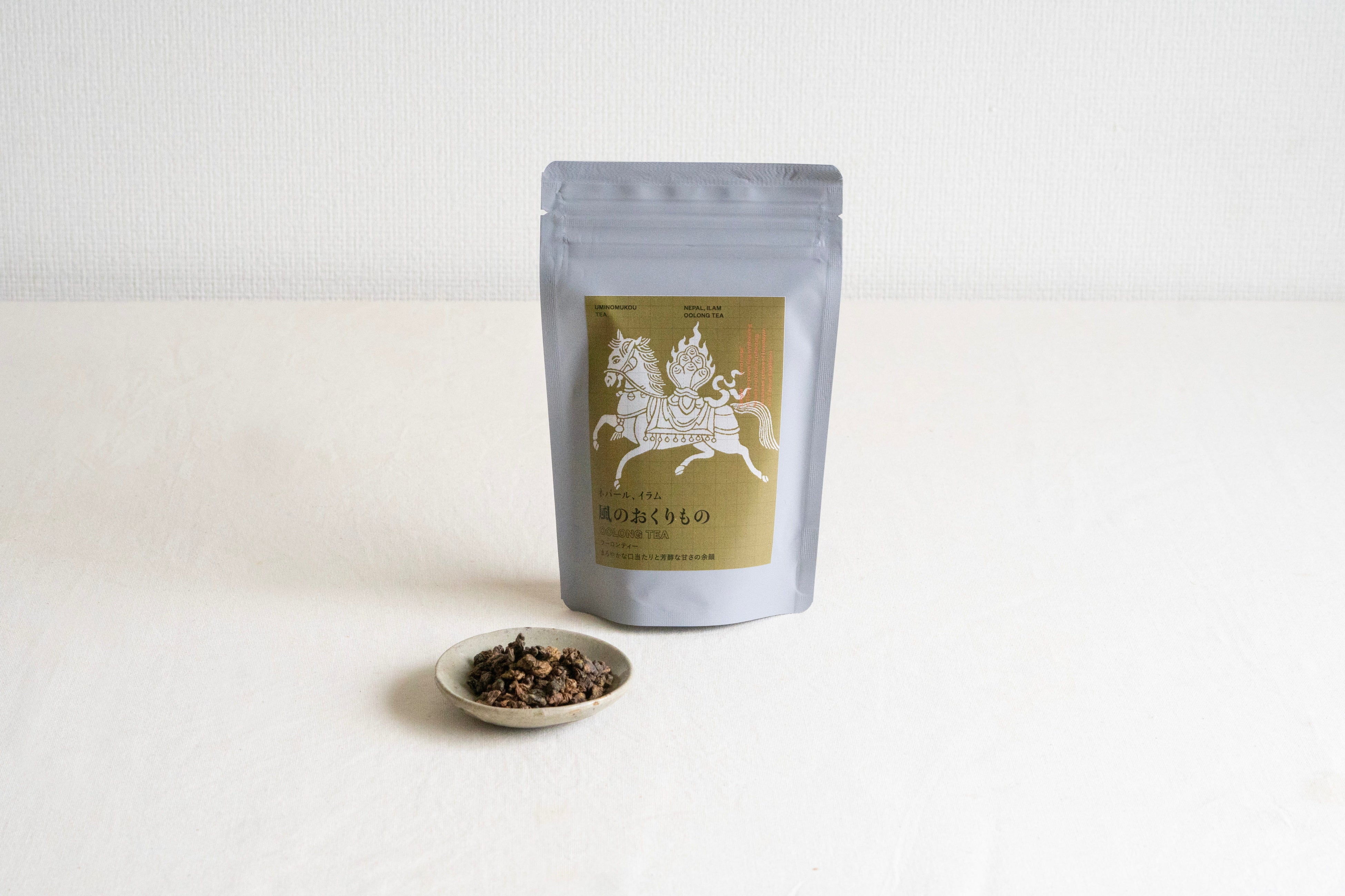 パッケージのイラストは、チベット仏教の魔除けと祈りの旗「ルンタ」の中央に描かれている「Wind horse(風馬)」をモチーフにしました。馬は、「風」と「速さ」の象徴で、日本の神社の絵馬でも心願成就の象徴として使われているように、願いごとが早く成就することを意味しています。多くの人にこのお茶が届きますように、という願いを込めたデザインです。