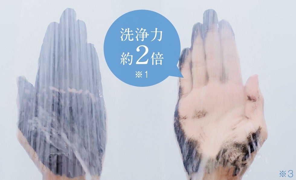 ウルトラファインバブルを含むサイクロンバブルミスト水形により、従来比約2倍※の洗浄力を実現。水流1mlあたり約1,090万個※2の微細な泡が、髪や頭皮に付着した汚れにアプローチし、ヘアワックスなどの落としにくい汚れも効果的に洗い流します。