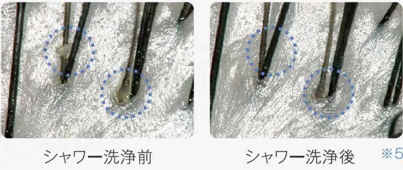 ※1・・・・サイクロンバブルミストの水形(ミスト孔$0.7mm×12個+シャワー孔$0.43mm×72個)と当社従来型シャワーの水形[JSB021/キモチイイシャワピタWS](墨汁で着色したヘアワックス)を塗布した人工皮膚に水流(吐水流量:4±0.2L/min ·吐水温度38±1℃)を10秒間吐水した。洗浄前後の汚れ量の変化から洗浄率(洗浄率=(試験開始前の汚れ質量一試験後の汚れの質量)/試験開始前の汚れ質量)を算出した。本試験は N=12 で実施し、平均洗浄率を比較評価した。(2026年1月タカギ調べ) ※2・・・サイクロンバブルミストの水形で通水する前の原水と、通水して吐水された水の各々で測定した1mlあたりのバブル数量の差を算出した結果。測定器:NanoSight NS300、測定条件:ファインバブル産業会規格 「ファインバブルシャワーヘッドの試験方法(FBIA 3-1-1:2019)」に準拠。供給水:イオン交換水(FBIAの超純水定義に準拠した水、水温:40℃、流量:9.0L/min、ウルトラファインバブル測定結果(n=10による平均値):「通水後吐水[数量:平均約1,380万個/ml] [バブルサイズ:平均径約0.11µm、最頻径約0.08µm]、通水前原水 [数量:平均約 290万個/ml] [バブルサイズ:平均径約0.08µm、最頻径約0.07µm]、通水後吐水と通水前原水の数量の差: 1,090万個/ml (2025年10月28日第三者機関にて測定)。水質・環境· 時期により数値は変動します。※3・・・社内検証を再現したイメージ動画です。※4・・・ キレイストシャワープラスのソフトシャワーの水形(穴径40.45mm・穴数222個)と当社従来型シャワー品:JSA021/キモチイイシャワーWS (穴径40.3mm・穴数351個)を使用し、静水圧0.2MPaで60秒間吐水した際の流量を比較した結果 (2026年1月タカギ調べ)※5・・・シャワー前後の毛穴周辺の頭皮・毛髪のイメージ画像※6・・・イメージイラスト