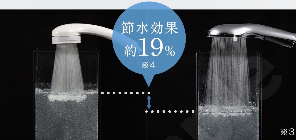 しっかりとした浴び心地を維持しながら、従来品と比較して約19%※の節水効果を実現