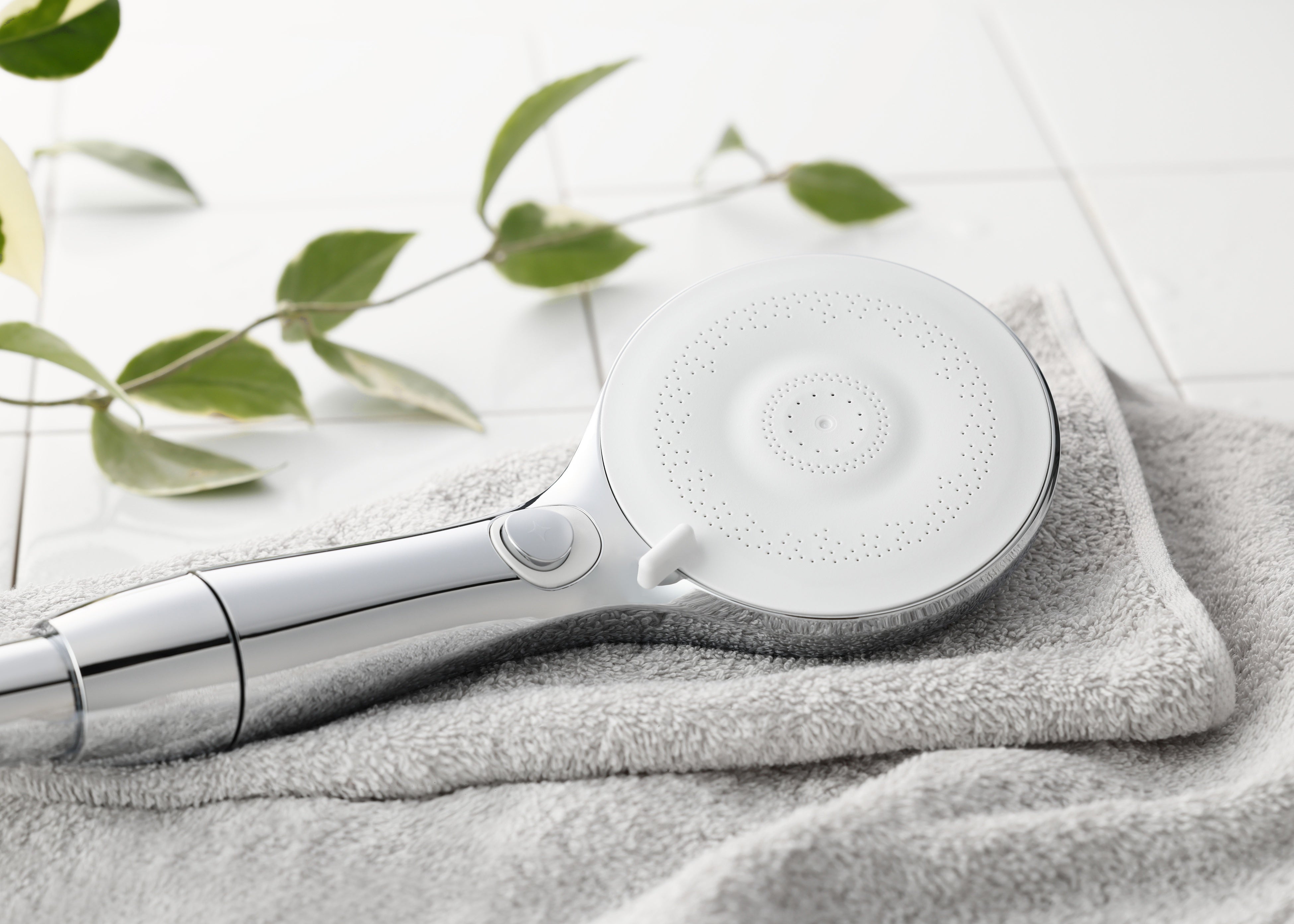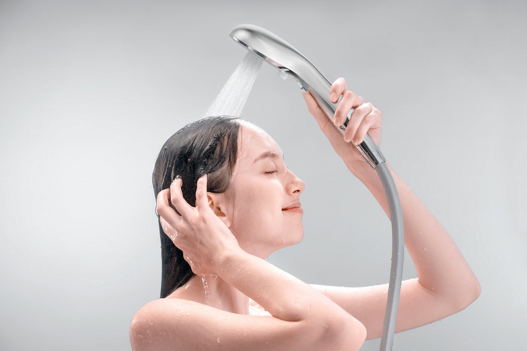 本製品は、塩素を除去する浄水機能により髪・頭皮へのダメージに配慮しながら、髪を美しく健やかに保つために重要なシャンプー前の「予洗い」に着目して開発しました。ウルトラファインバブルを含むサイクロンバブルミストが、髪や頭皮に付着した汚れをやさしく浮かせて洗い流すことで、シャンプー時の泡立ちを高め、洗浄効果の向上に貢献します。