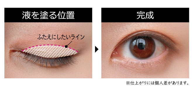 液を塗る幅や位置を調整するだけで、なりたいふたえがつくれます。