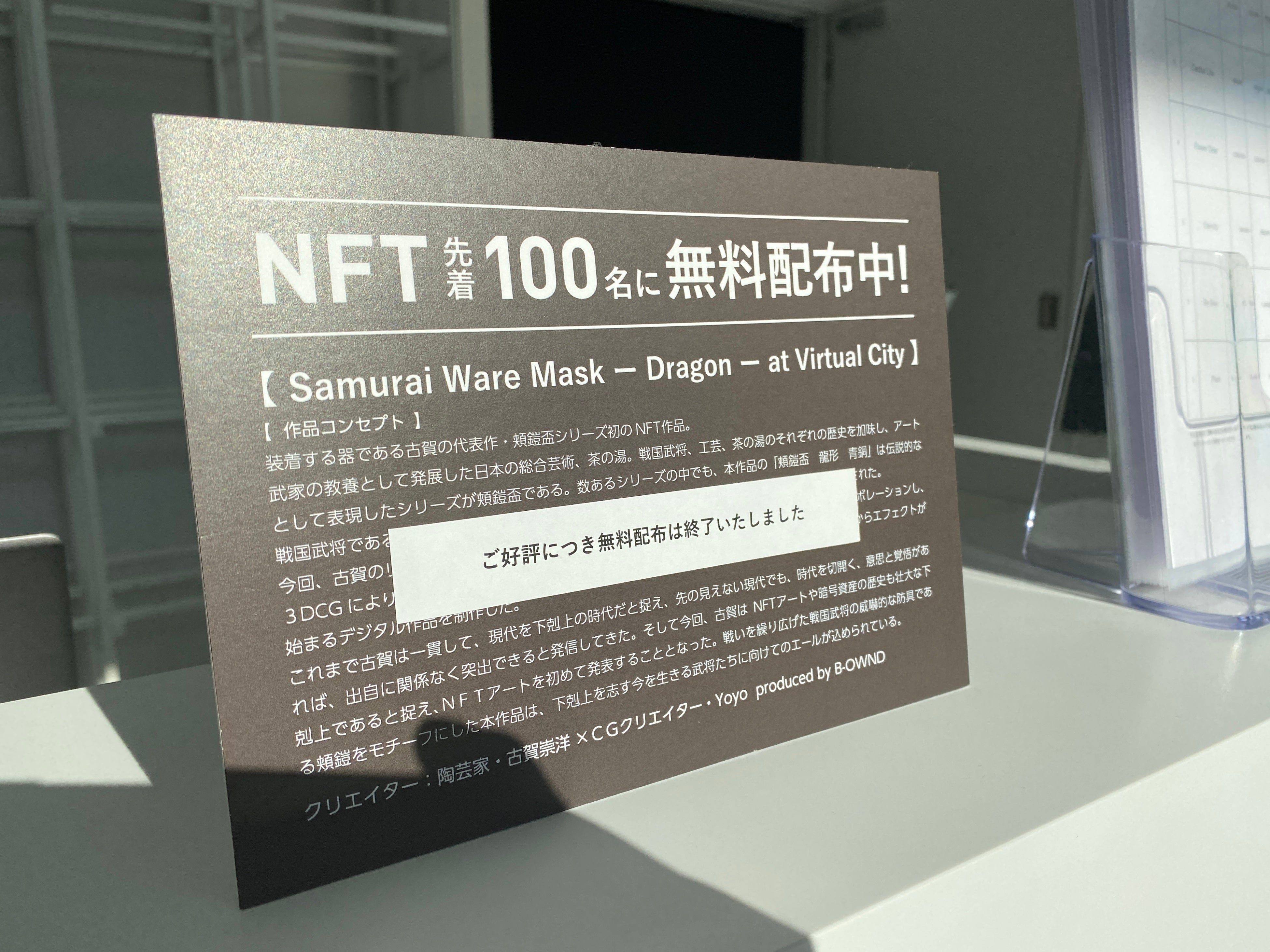 丹青社・B-OWNDとコラボレーションを行い、陶芸家・古賀崇洋の特別限定NFTを先着100名にて、来館者限定で配布。来館者の取得データより、約4割が「SNSでのNFT配布の事実を見て来訪した」と回答しており、