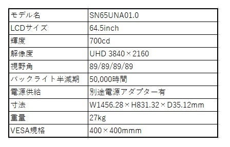 台湾AUO製デジタルサイネージのハイエンドモデル SN65UNA01.0の市場本格投下を進めます。