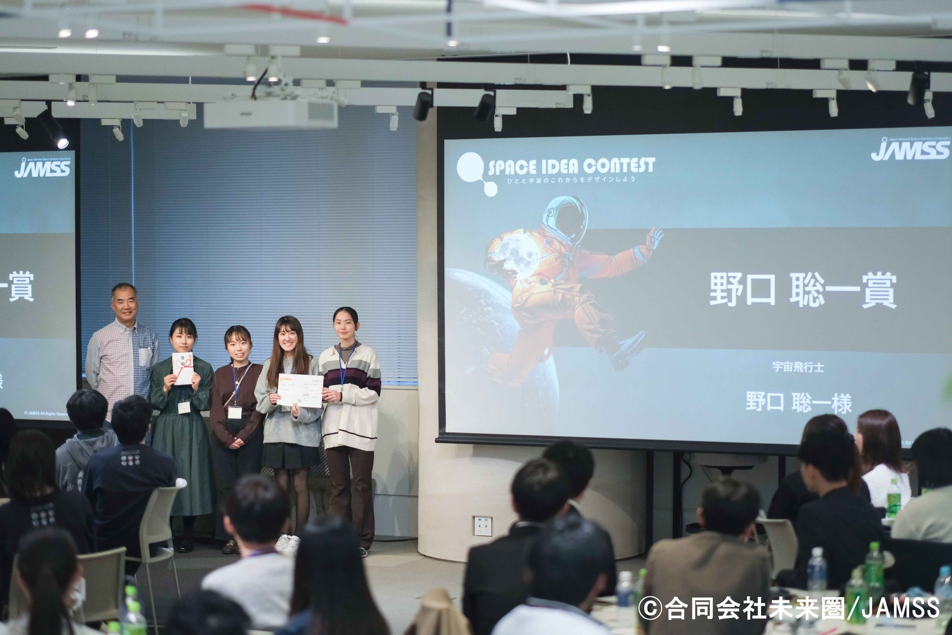 2日目の午後、10グループによるプレゼンテーションと審査会が行われました。学生たちは緊張した表情を見せながらも、自らのアイデアを力強く発表してくれました。審査は、特別審査員兼審査員長である宇宙飛行士 野口 聡一氏をはじめ、4名の審査員によって行われました。学生たちは緊張の中でも、アイデアに対する想いと熱意を込めてプレゼンテーションを行い、その姿勢には会場全体から温かな応援の気持ちが感じられました。