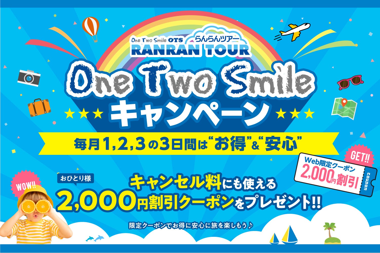 沖縄ツーリストの沖縄旅行専門サイト「らんらんツアー」では、毎月1日・2日・3日の3日間がお得で安心な「One Two Smileキャンペーン」を11月よりスタートします。