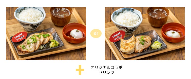 五等分の花嫁にちなんで、チャーシューが5枚入りです。炙りチャーシュー定食と焼餃子&チャーシュー定食の2種類をご用意しました。特典にカード3枚とピックが付いてきます。