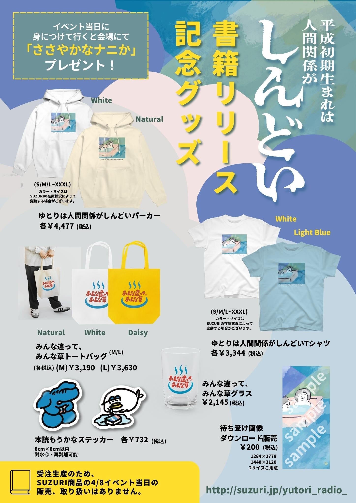 ● ドレスコードはありません。服装に困ってしまう方は、下記のURLで販売中の「書籍リリース記念グッズ」から記念Tシャツ・パーカーをどうぞ!グッズを見る:https://suzuri.jp/yutori_radio_