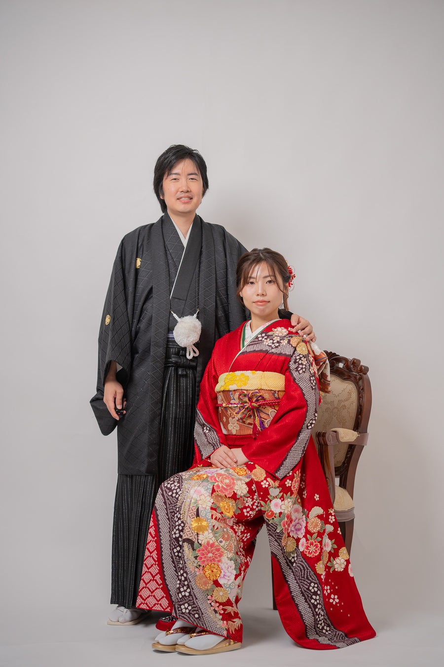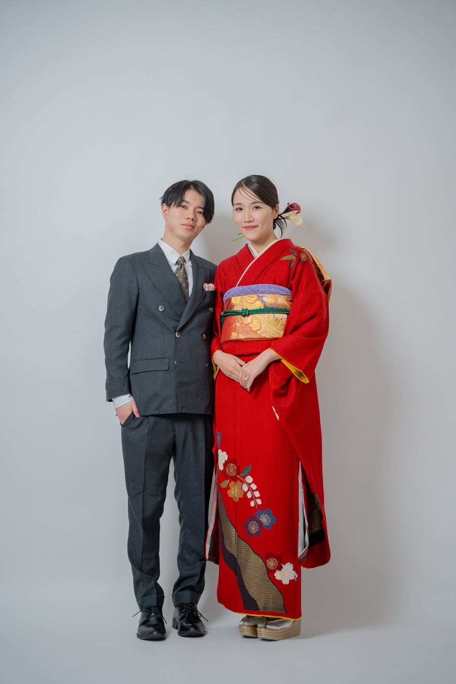 このプランには、セルフでの10分間記念撮影サービスが含まれており、顔合わせのあとにスタジオに立ち寄るだけで、特別な記念日を美しい形で残すことが可能です。簡易ながらもしっかりとしたスタジオセッティングと着付けで、「ちょっとした記録」が「一生の記念」に変わります。