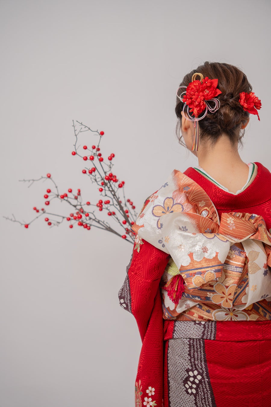 近年、両家の顔合わせ食事会や結婚の報告の場において、改まった場にふさわしい衣装として振袖が再び注目されています。「結婚式まではまだ時間があるけれど、結納など特別な場には和装で臨みたい」そんな想いに応えるべく、本プランでは着物一式・ヘアセット・小物・簡易撮影までをセットにし、手ぶらで来店可能なオールインワンのプランとしてご提供いたします。