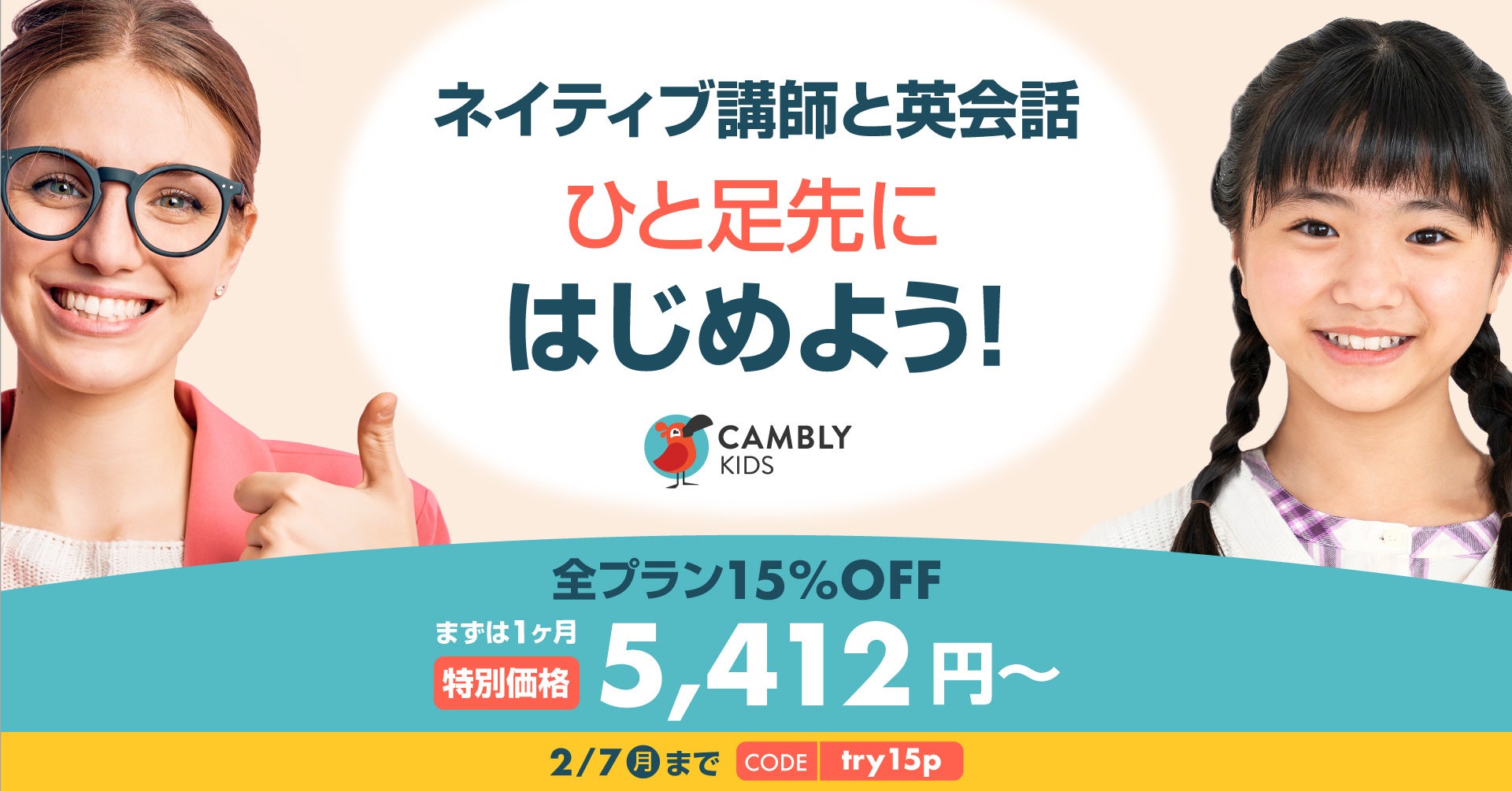 Cambly Inc.(本社:アメリカ・サンフランシスコ、日本代表:佐藤 亜希子)が提供する子ども向けオンライン英会話サービス「Cambly Kids(キャンブリー キッズ)」は、2月3日(木)から2月7日(月)までの5日間、Cambly Kidsを全プラン15〜36%OFFでご利用いただける特別セールを開催いたします。