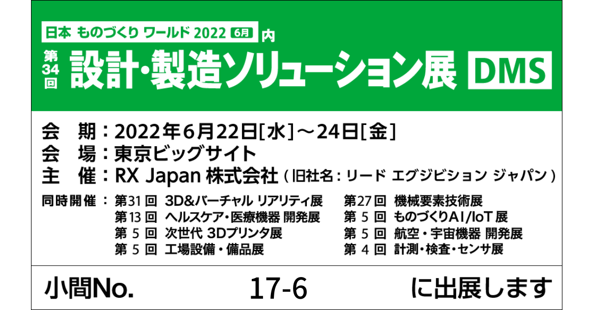 我々、株式会社Leaner Technologiesが出展する[設計・製造ソリューション展(DMS)]は、CAD、CAE、ERP、生産管理システムなどの製造業向けITソリューションが出展する展示会です。