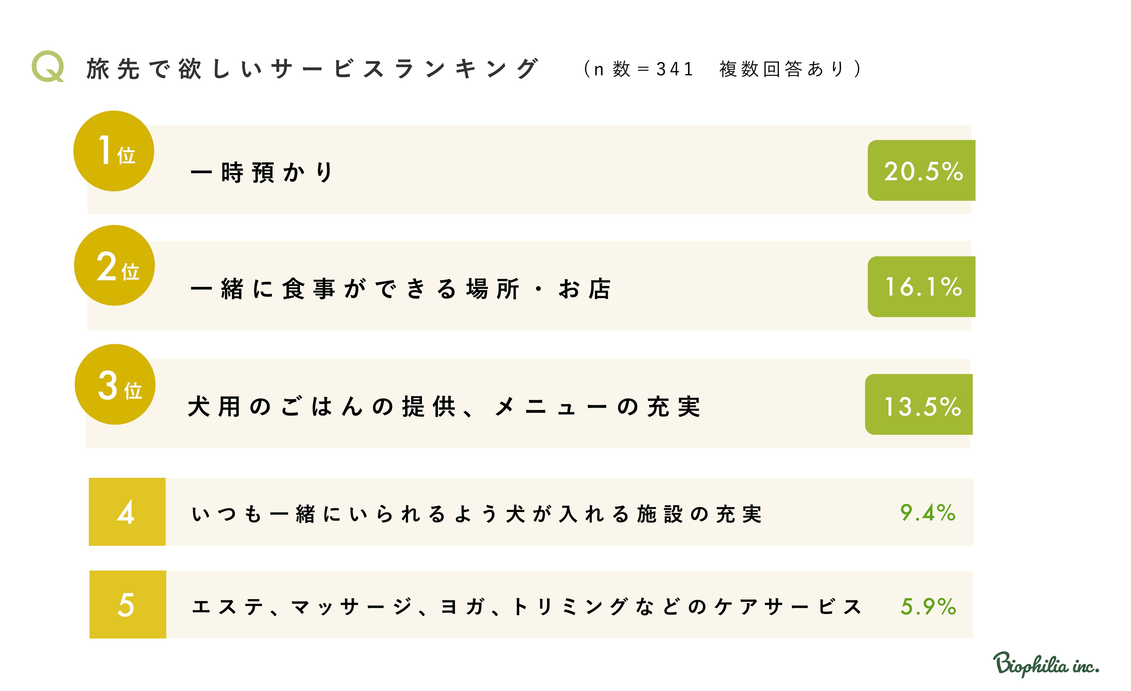 前回の当社調査リリース(https://prtimes.jp/main/html/rd/p/000000034.000044537.html)から分かるように、愛犬が家族同然の存在となり、一緒に旅行することが当たり前になっていることから、愛犬連れの旅行にどういった需要があるのか全国の犬の飼い主568名に旅行に関する意識調査を行い、各種ランキングを作成しました。