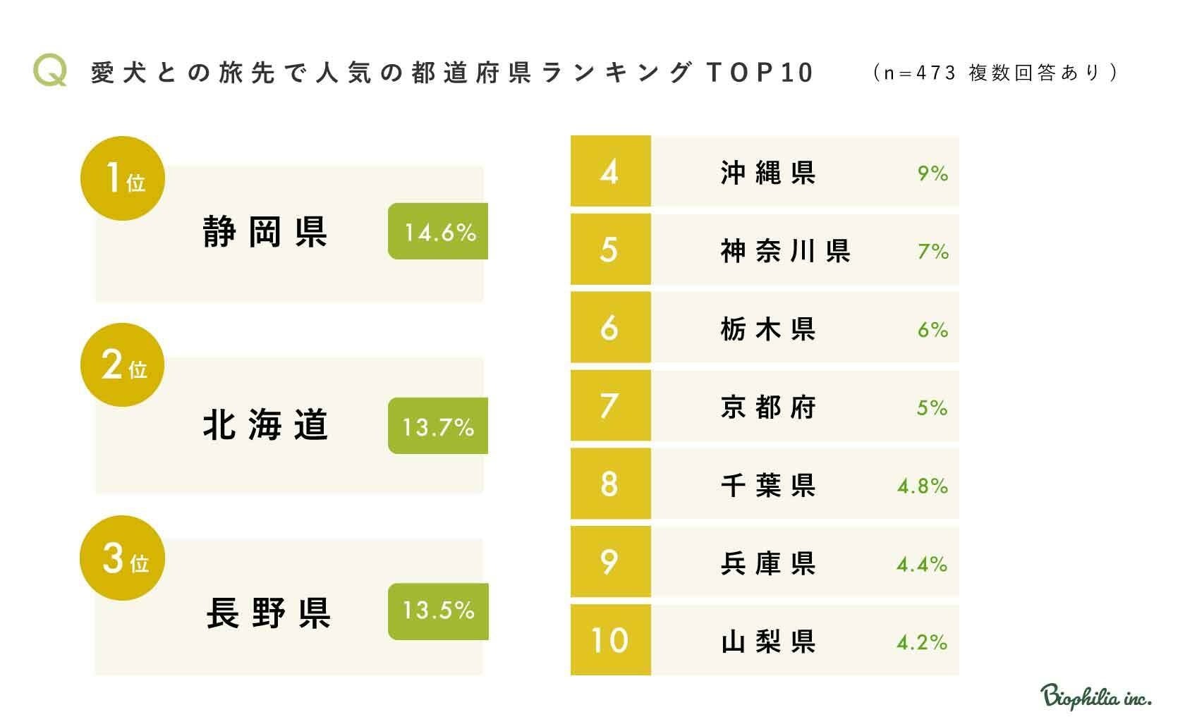 【Biophilia 犬猫調査リリース#6】GW目前!愛犬との旅行で人気の都道府県ランキング発表!トップ3は静岡県、北海道、長野県。