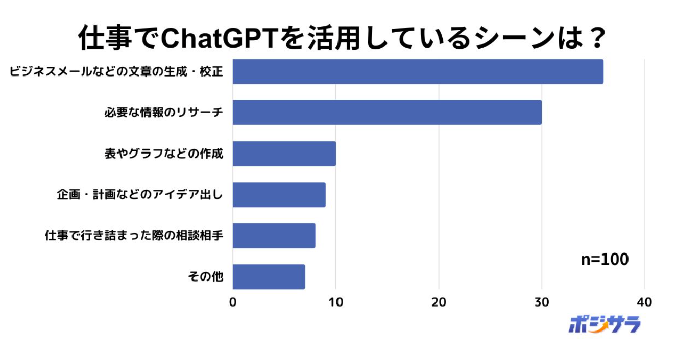 出典:株式会社ACIL、ポジサラ 「仕事でChatGPTを活用しているシーンは?」