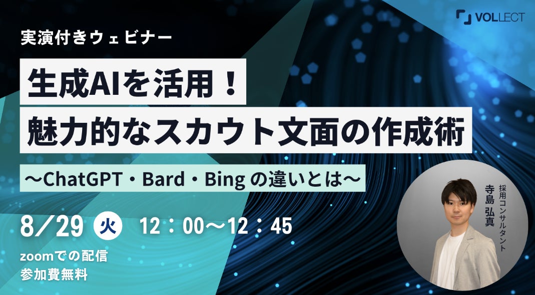 【8/29開催】「話題の生成AIを活用!魅力的なスカウト文面の作成術」 ChatGPT・Bard・Bingの違いとはウェビナー【採用担当者対象】