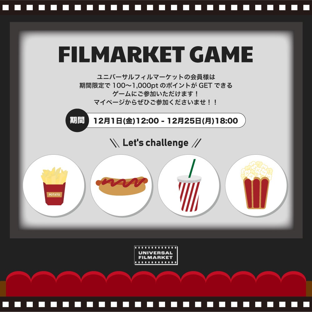 Universal Filmarketの会員様には期間限定でもれなくポイントがGETできる【FILMARKET GAME】にご参加いただけます!