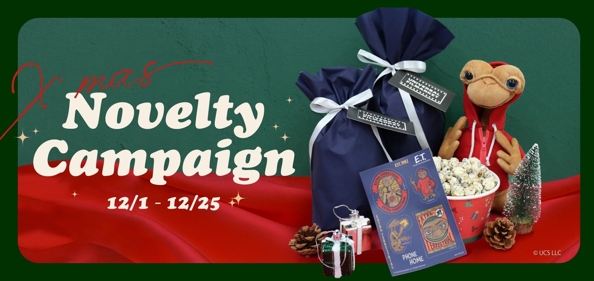 期間中に商品を5,000円(税込)以上ご購入いただきましたお客様に『E.T.』のステッカーとUniversal Filmarketオリジナルポップコーンのセットをプレゼント!