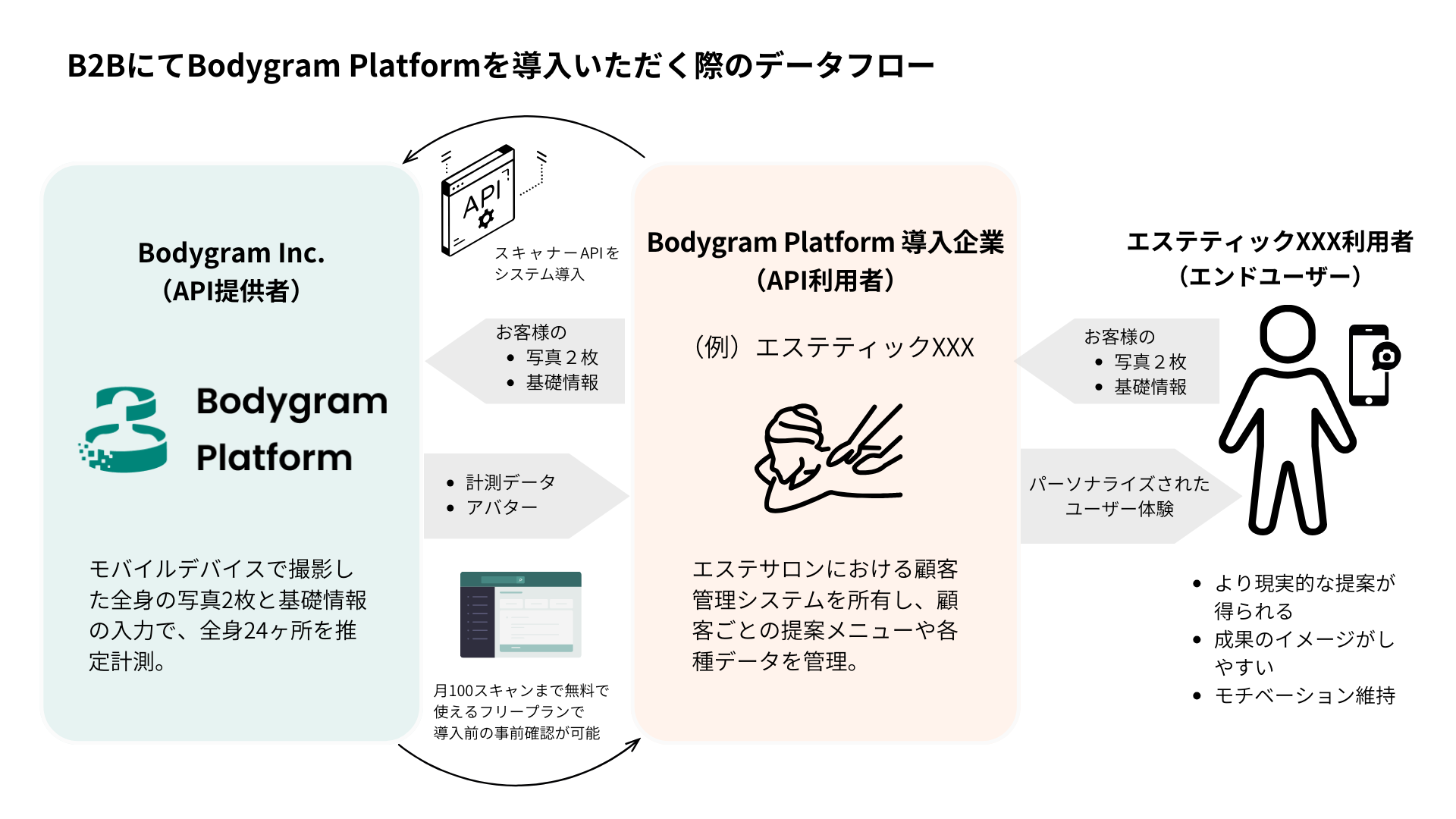 このような背景から、まずは「Bodygram」のボディスキャン技術を無料でご利用いただく機会を創出し、その使用感や活用方法等を具体的にご検討いただき易いよう、新サービス「Bodygram Platformフリープラン」をご提供する運びとなりました。