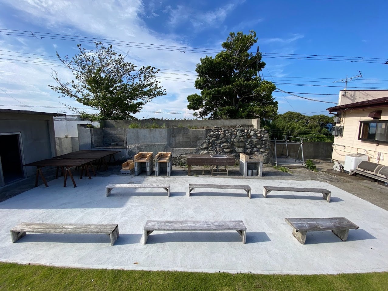 芝生エリアを増設したお庭では、スタッフお手製のBBQスペースでBBQや花火も!