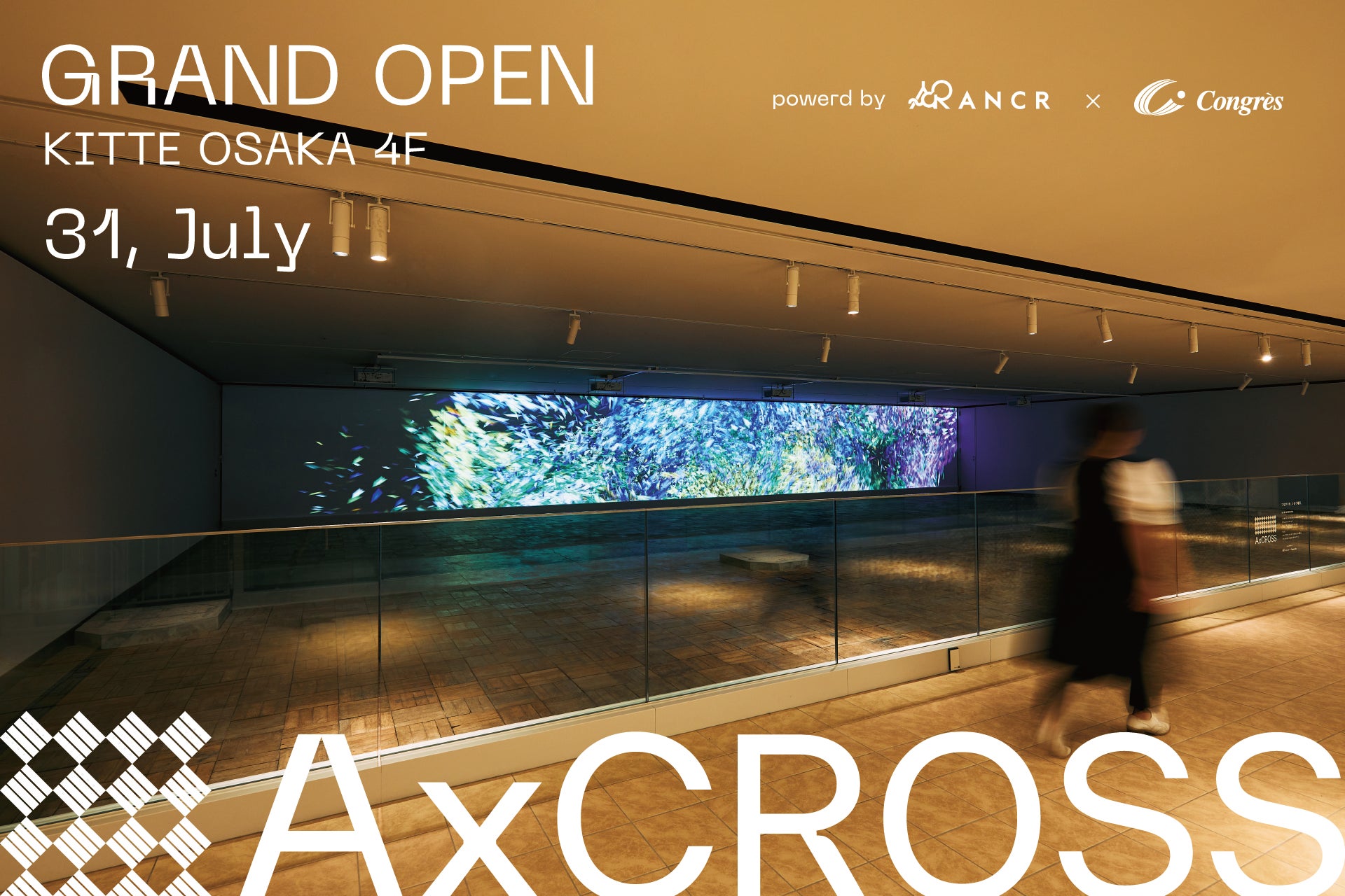 ライフスタイルプロデュースを軸にエリア開発やクリエイティブ事業を行う株式会社ANCR(本社:東京都世田谷区、代表取締役:福島颯人、以下ANCR)は、国際会議、展示会・イベント、施設運営等MICEのトータルプロデュースを行う株式会社コングレ(東京都中央区、代表取締役社長:武内 紀子、以下コングレ)と共同で2024年7月31日に開業する日本郵政の新商業施設「KITTE大阪(大阪市北区)」4階フロアの旧大阪中央郵便局保存建屋において、デジタルアートの企画および屋内広告のクリエイティブスペース『AxCROSS(アクロス)』の運用を開始いたします。