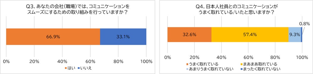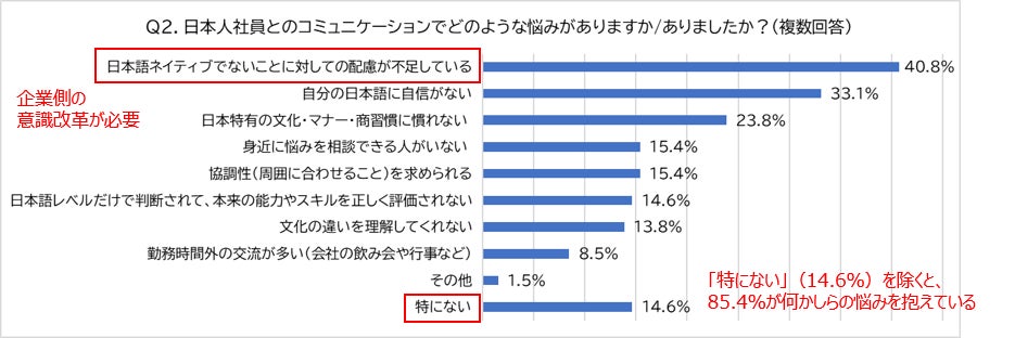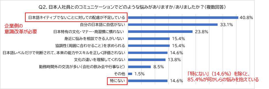 日本人社員とのコミュニケーションで何かしらの悩みがある外国人社員は8割超