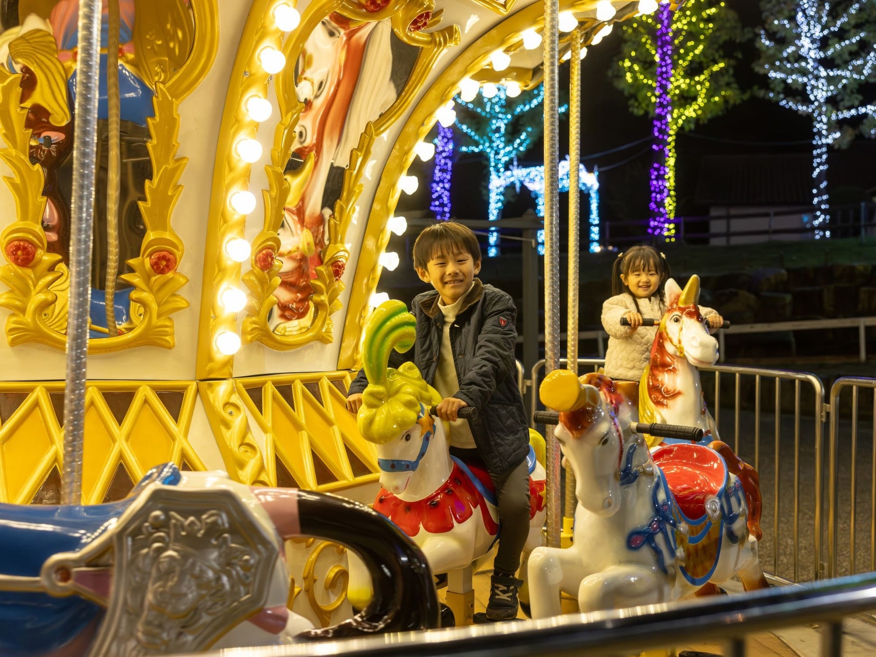そのほかメリーゴーランドや観覧車なども夜間営業を行い、ルミネーションとともに、自然の中で光と遊びを満喫できるエリアとして展開されます。