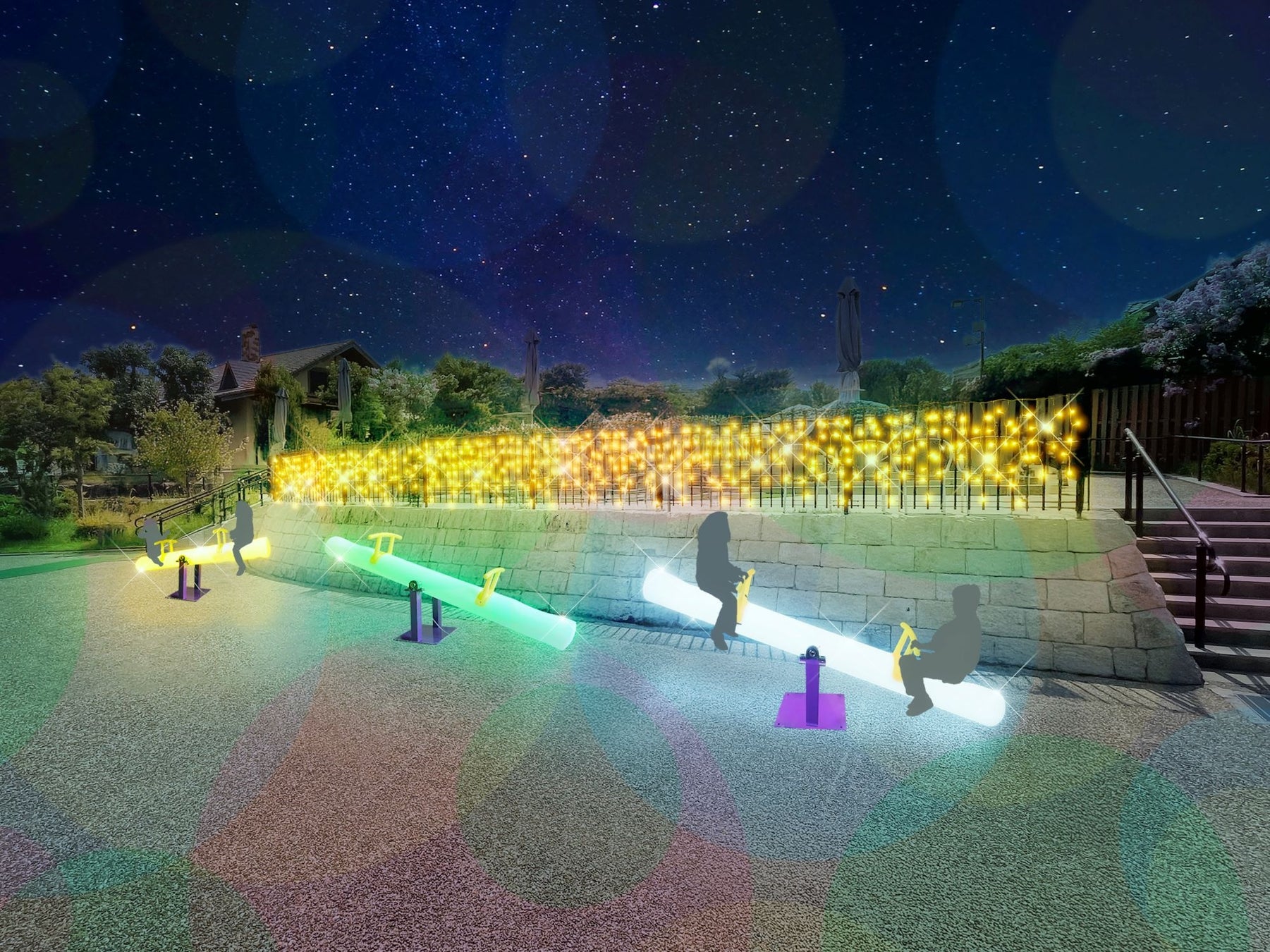 昨年よりもエリア拡大!光るシーソーや音の鳴る光のステップなど、大人も子どもも楽しめるイルミネーションも盛りだくさん!2025年10月31日から2026年2月23日までの特定日に開催。