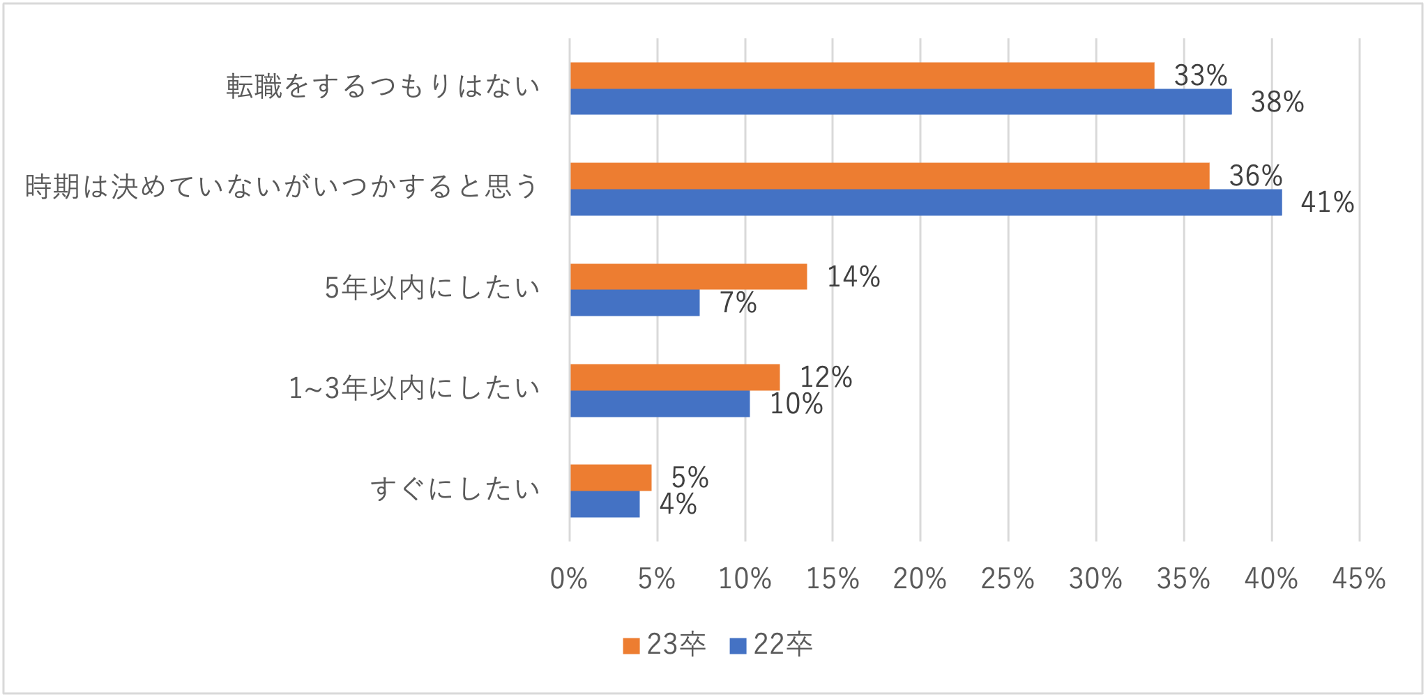 これまで学んだことを活かせる仕事内容 | 23% | 22% |