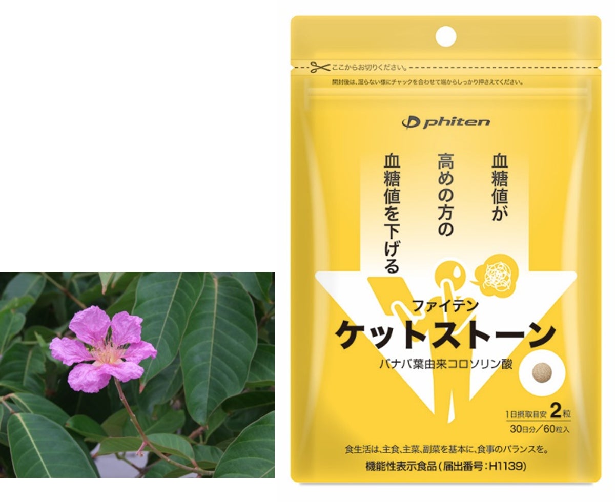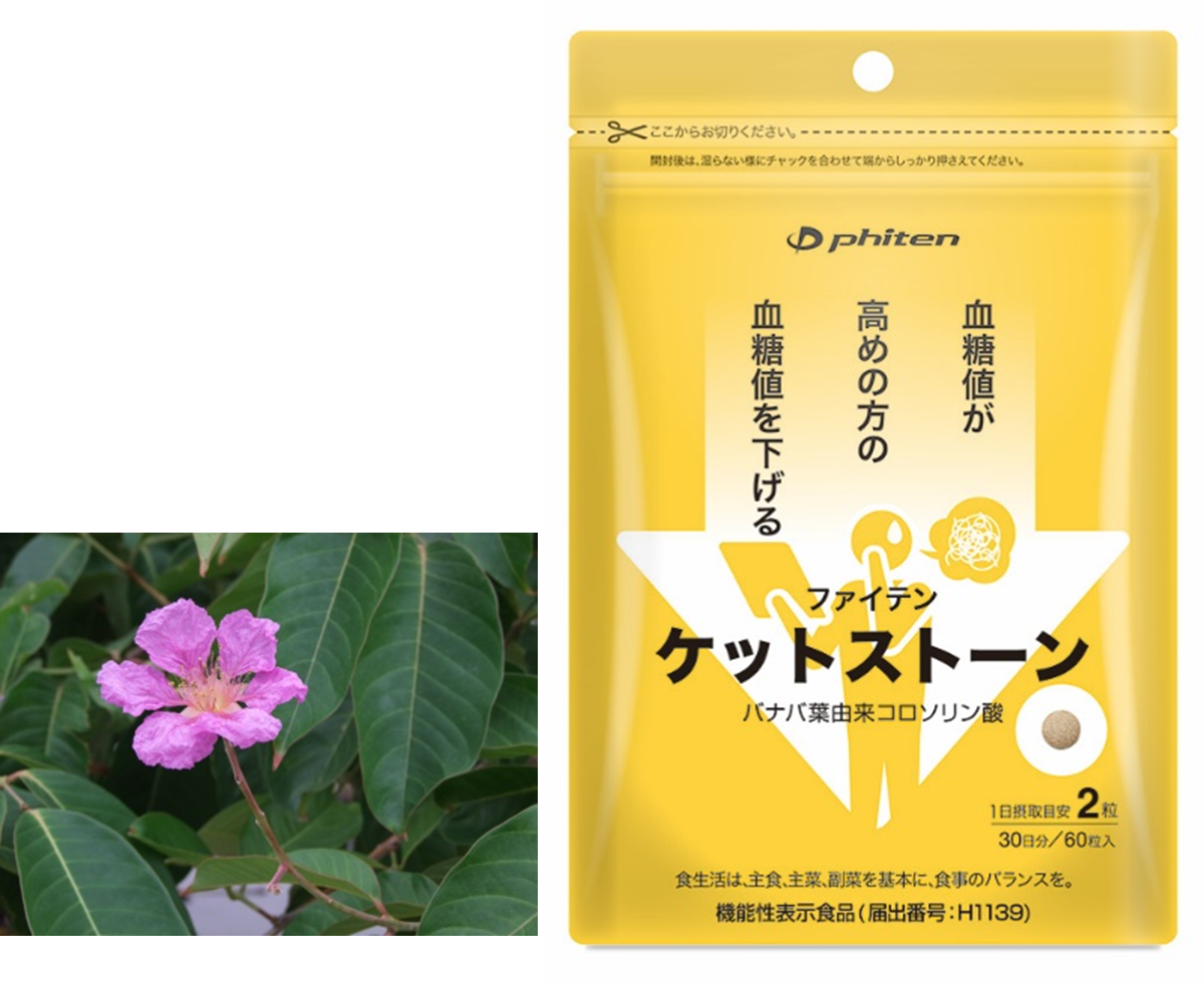 機能性関与成分として「バナバ葉由来 コロソリン酸」を1日の摂取目安2粒中に1mg配合。コロソリン酸とは、バ