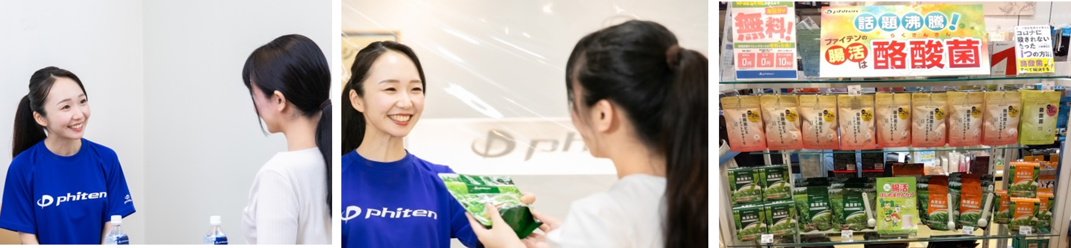 ファイテンショップではお客様に寄り添った提案型の接客スタイルを行っております。食生活やお悩みをお伺いし、春夏秋冬の1年を通して腸活提案をしてきたスタッフが、腸活のメリットをわかりやすくご説明させて頂きます。腸活に関心があるけど何から手をつけてよいのかわからない方、なんだか毎朝スッキリしない方、体調管理に気をつけたい方等、是非お気軽にご相談ください。