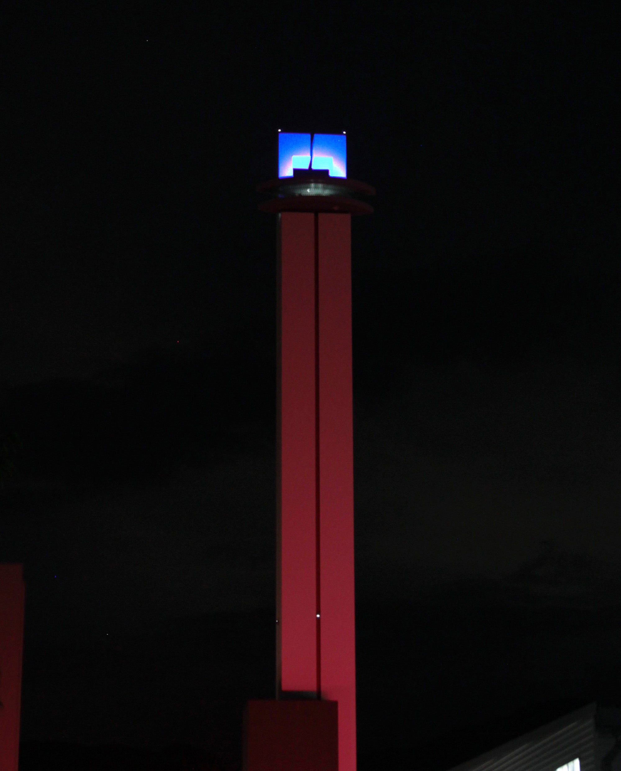 滋賀県でも有数の高さを誇るエレベータ研究塔に灯された光を見ることで、ひとりでも多くの