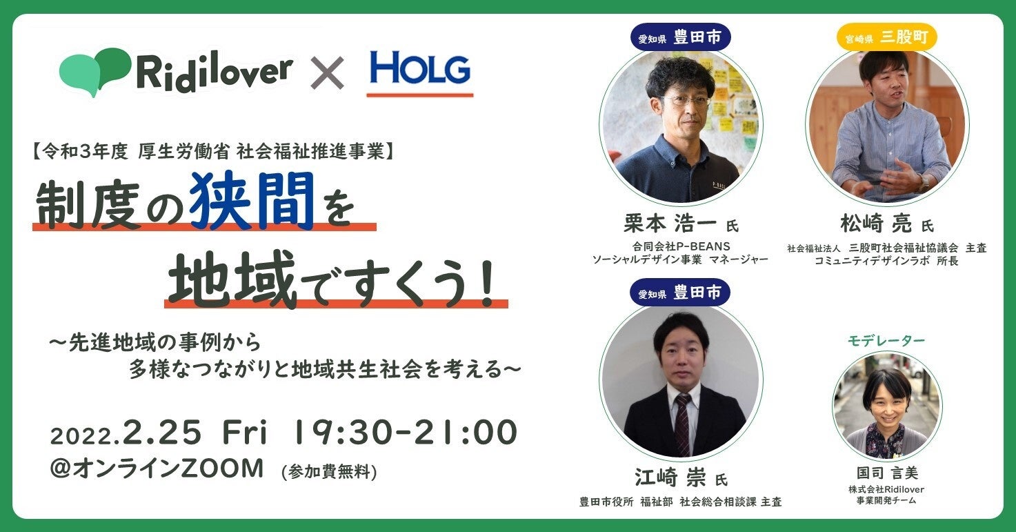 令和4年2月25日には、重層的支援体制整備事業や参加支援の在り方についてご関心のある市町村の公務員の方・事業者の方を主な対象に、公務員オンラインサロンを運営する株式会社ホルグと共催で、好事例の紹介を中心としたオンラインイベントを開催いたします。ご関心のある方は是非ご参加ください。