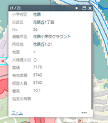 デジタル化したハザードマップは洪水・高潮等の浸水想定区域、土砂災害警戒区域等や地震による揺れやすさなど、それぞれの情報をレイヤーで選択しながら表示できるため、リスク情報が一目瞭然。「情報が多すぎる」「災害の種類に応じて複数のマップを見なければいけない」という煩雑さがありません。また、避難所等を選択すると住所や標高、対応している災害の種類などの情報を参照することが可能です。