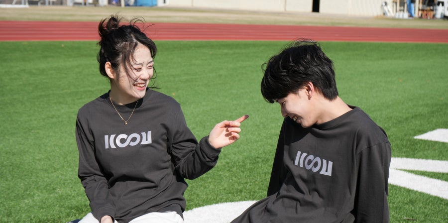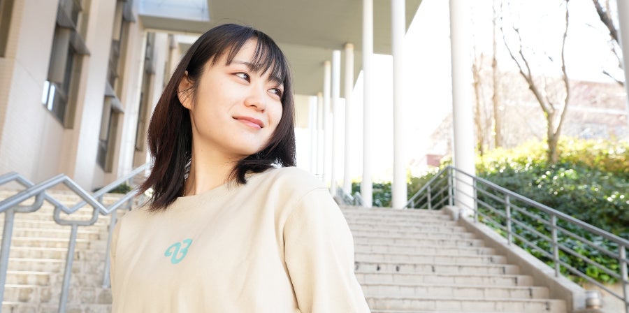 今回、オンラインサイト内のモデル・グッズの写真は、芸術学部写真映像メディア学科の学生がキャンパス内で撮影編集を行い、学生2名がモデルを務めました。