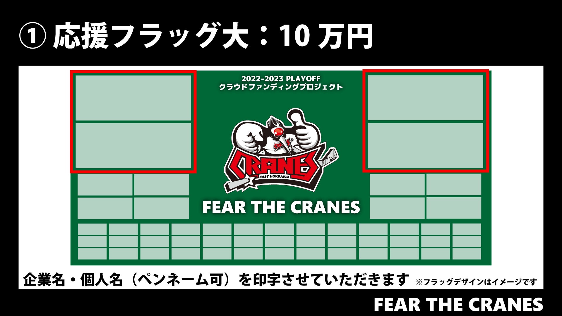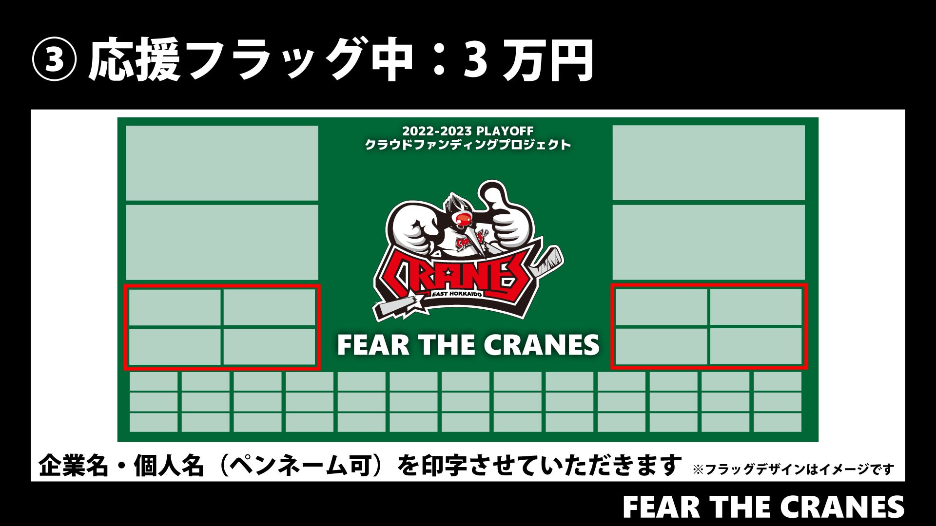 プレーオフスローガンは「FEAR THE CRANES」、ひがし北海道クレインズとして初のプレーオフ挑戦となりますが、チャレンジャーとして恐れられるチームとなれるよう思いを込めております。「#FEARTHECRANES」で各SNSにて投稿いただき、チーム・ファン一丸となってプレーオフを盛り上げていきましょう!