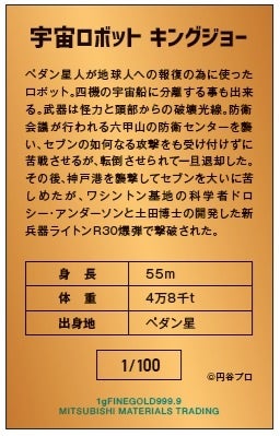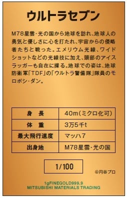株式会社ニッポン放送プロジェクトは、『ウルトラセブン』の人気キャラクター、ウルトラセブン、キングジョー、メトロン星人を1gの純金に印刷した超豪華な「純金プレート」を発売いたします。